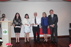 ![]() | ![]() Consul RP in Vancovuer M. Trzcinski | ![]() Gold CPC Pin received Mrs. T. Rakowska, Polish Women Federation, A. Stasiak, Belweder North Shore Association |